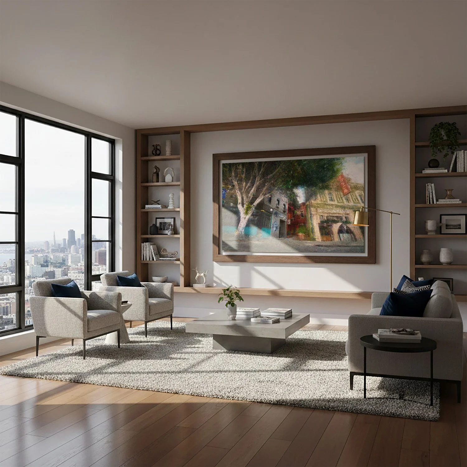 The resulting artwork possesses a timeless and impressionistic quality, transforming your special place into a sophisticated piece of fine art designed to integrate seamlessly into your home.